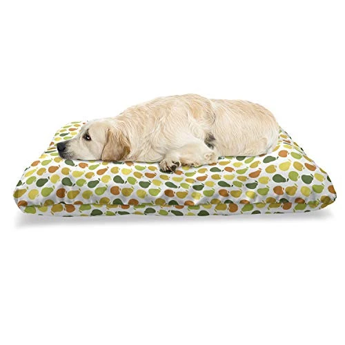 Ambesonne Fruits Pet Bed, Apple And Pears Food Botanical Food Art Garden Bloom Of Yummy Motives, Chew Resistant Pad For Dogs And Cats Cushion With Removable Cover, 24″ X 39″, Hunter Green And Yellow