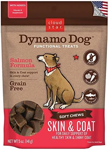 - With salmon, salmon oil and vitamin E for a luxurious coat and healthy skin
