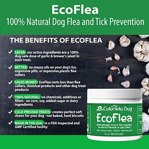 - MADE in the USA in an FDA registered facility with all natural ingredients and no fillers – no corn, soy, added sugar or dairy. Ecoflea is the perfect, healthy dog treat for flea and tick control