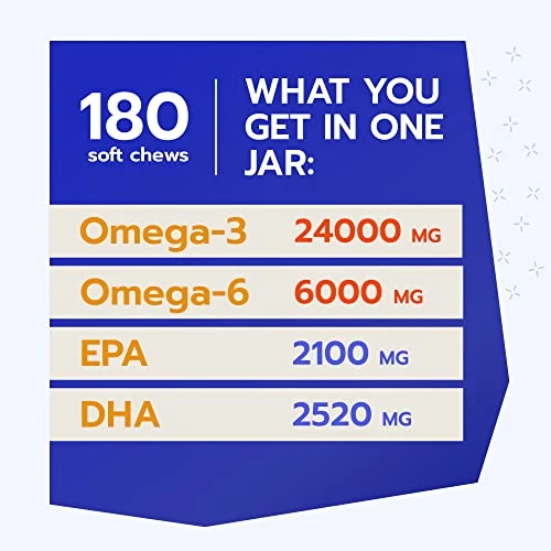 - Hip & Joint, Immunity Support – these Omega-rich soft chewables also work to support hip and joint health, support immune system, heart and brain function, improve general energy level.