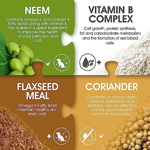 - Active Ingredients: Vitamin B complex, Neem, Coriander
