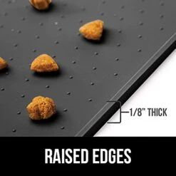 - No More Mealtime Mess: some of the cutest pets can be the messiest eaters; feeding mat features ultra thick raised edges that help to contain food and water thatโs been spilled while eating; take the stress out of mealtime no matter how messy an eater your pet is