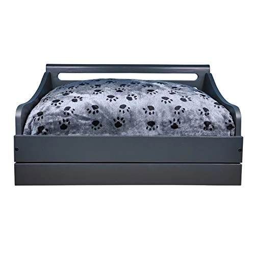 - Available in three models (antique Gray, Rustic brown and Charcoal Gray), cushion Dimensions: Small – 20×13 inches, Suitable for pets up to 30 lbs, bowl size: 32 oz each.