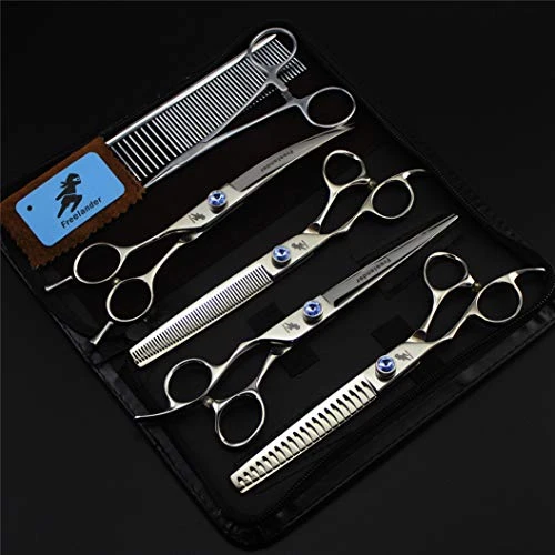 - Comprehensive Grooming : Pet grooming scissors and steel comb is great for removing tangles, mats, loose hair and dirt. Straight scissors is good for cutting flat parts of hair, curved one good for shaping the coat, thinning one good for thinning dense coat. Steel comb is a great helper when grooming