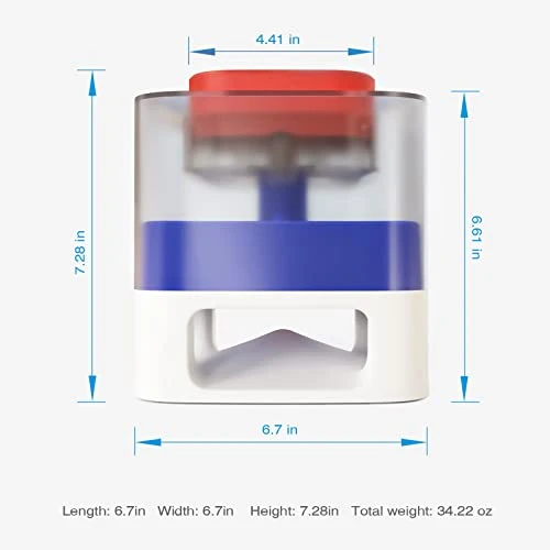 - (Fun Food Catapult Design): By pressing the top button, the food will automatically slide out, and the owners can learn how to use it through guiding training, which can not only increase the intimate relationship with the owner, but also improve the pet IQ, and relieve the daily anxiety of the dog when requiring the owner’s company.
