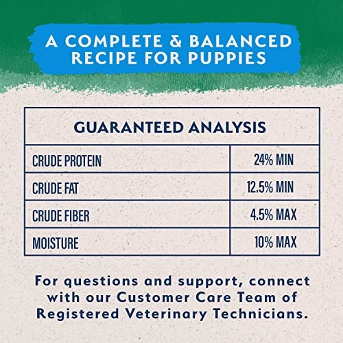 - SPECIALLY FORMULATED FOR GROWING DOGS Made with the same balanced nutritional philosophy, our Puppy Formula is designed to help your little dog grow big and strong. Small bites for small mouths and DHA help support your puppy’s healthy brain development.