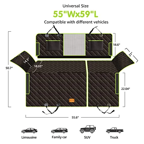 - 【High Safe Protection for Dogs and Cars】Unlike other brand easy-to-break-down zippers, NZONPET convertible dog car seat cover for back seat uses durable solid velcro in the stitched seams and over the zippers preventing rips or tears from dog claws and ensuring long-lasting usage. Bigger size with 56″ W x 60″ L. Available for most limousines, family cars, compact SUVs, or trucks.