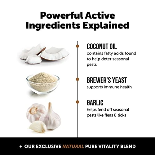 - MADE WITH COCONUT OIL, BREWER’S YEAST, & GARLIC: Flea + Tick Support chews are filled with natural health-supporting ingredients you can trust and are easier to give than oils or sprays. Coconut Oil contains fatty acids found to help deter seasonal pests. Brewer’s Yeast supports immune system health. Garlic helps fend off seasonal pests like fleas & ticks.