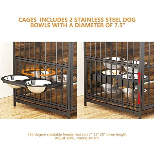 - 【Package List】Multi-functional design that doubles as an elegant side table with extra storage space for pet supplies, reducing clutter in your home. The package contains 1 dog crate, 2 stainless steel bowls, and 1 installation instruction.