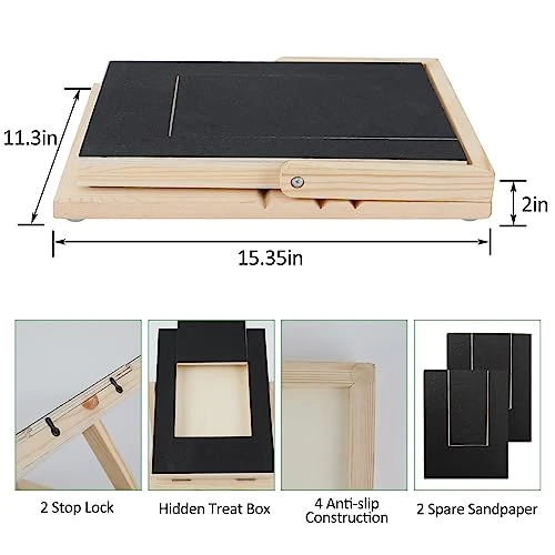 - Treat Box Design:Our dog nail scratch board designs a treat box that you can train by playing games or food temptation to finish trimming nails. The dog scratch board designs metal latch to control the treat box.