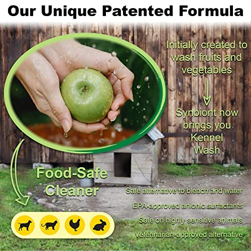 - BLEACH ALTERNATIVE – Unlike traditional toxic sanitizing steps such as bleach or chlorine, Synbiont Kennel Wash allows for an environmentally friendly alternative to cleaning that doesn’t require re-entry restrictions, is non-corrosive and can be used freely around your pets.