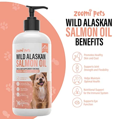 - 🐕 A WAG-WORTHY MEAL ENHANCER: Zoomi Pets Wild Alaskan Salmon oil is the paw-fect addition to raw, wet and dry food with no added artificial flavors. A few pumps of our wild Alaskan salmon oil for dogs and cats mixed with their favorite meal time snacks is all it takes to meet your pet’s omega-3 quota for the day – even if they are picky eaters making it a perfect alternative to capsules, chews and treats.