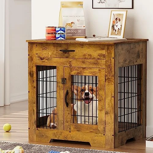 - Dimensions and Style: The overall size of the kennel furniture is 29.9″ L x 24.8″ W x 30.7″ H, it’s suitable for providing small and medium dogs with spacious living space; Fashionable appearance and retro style will perfectly harmonize with your room.